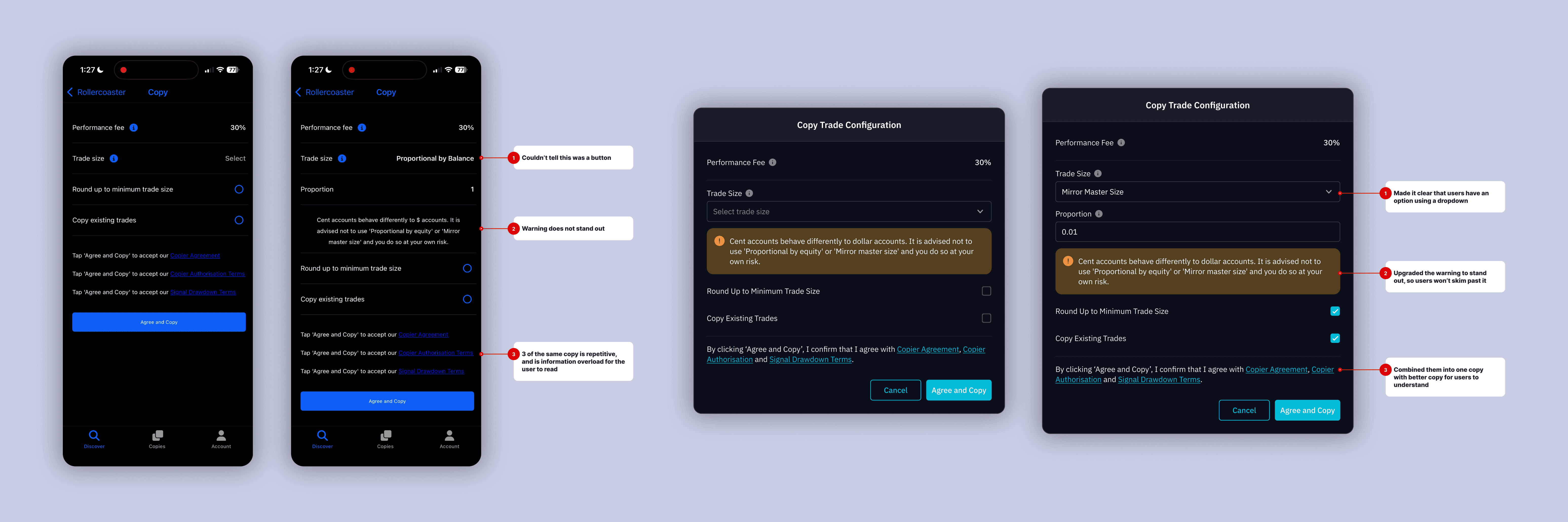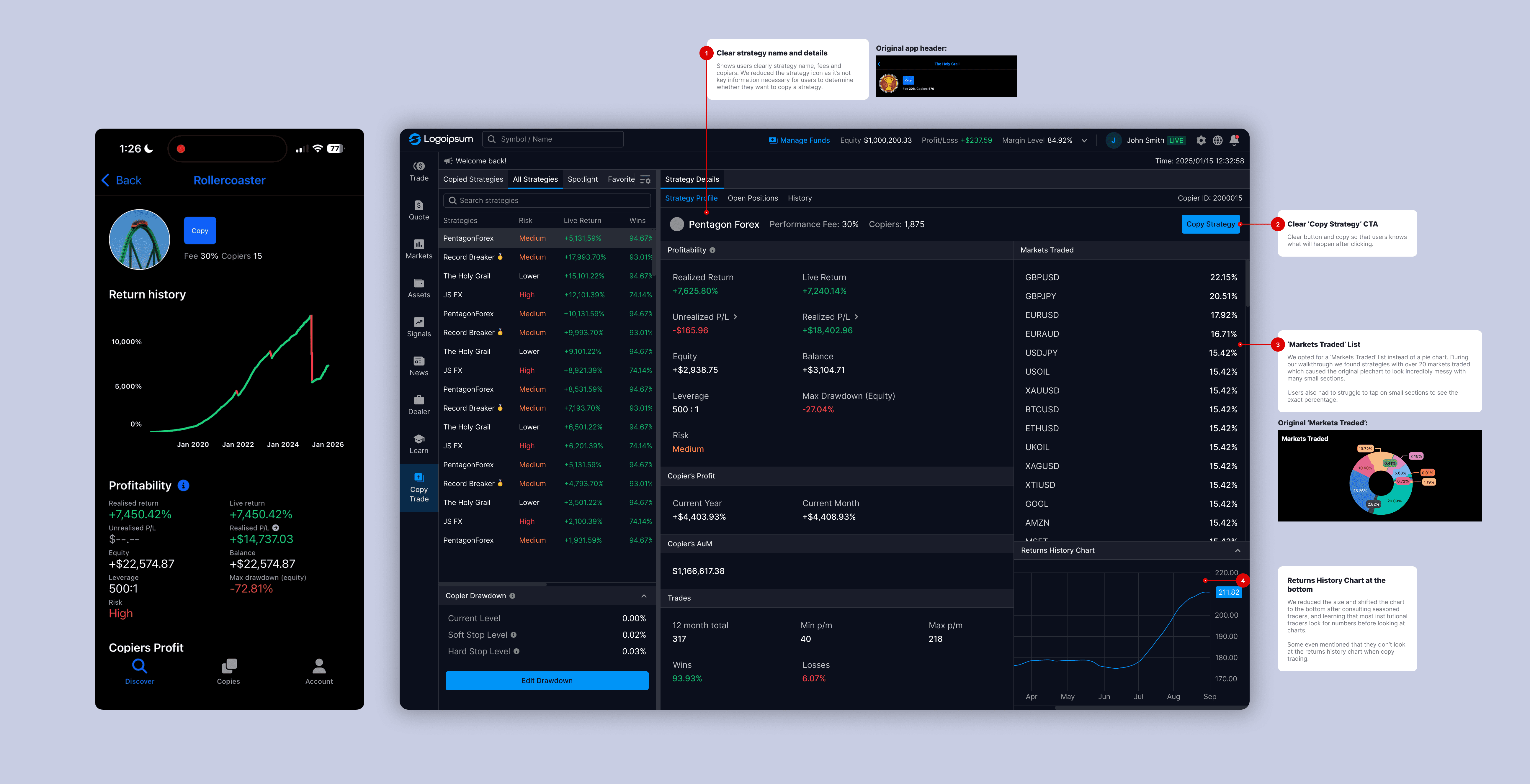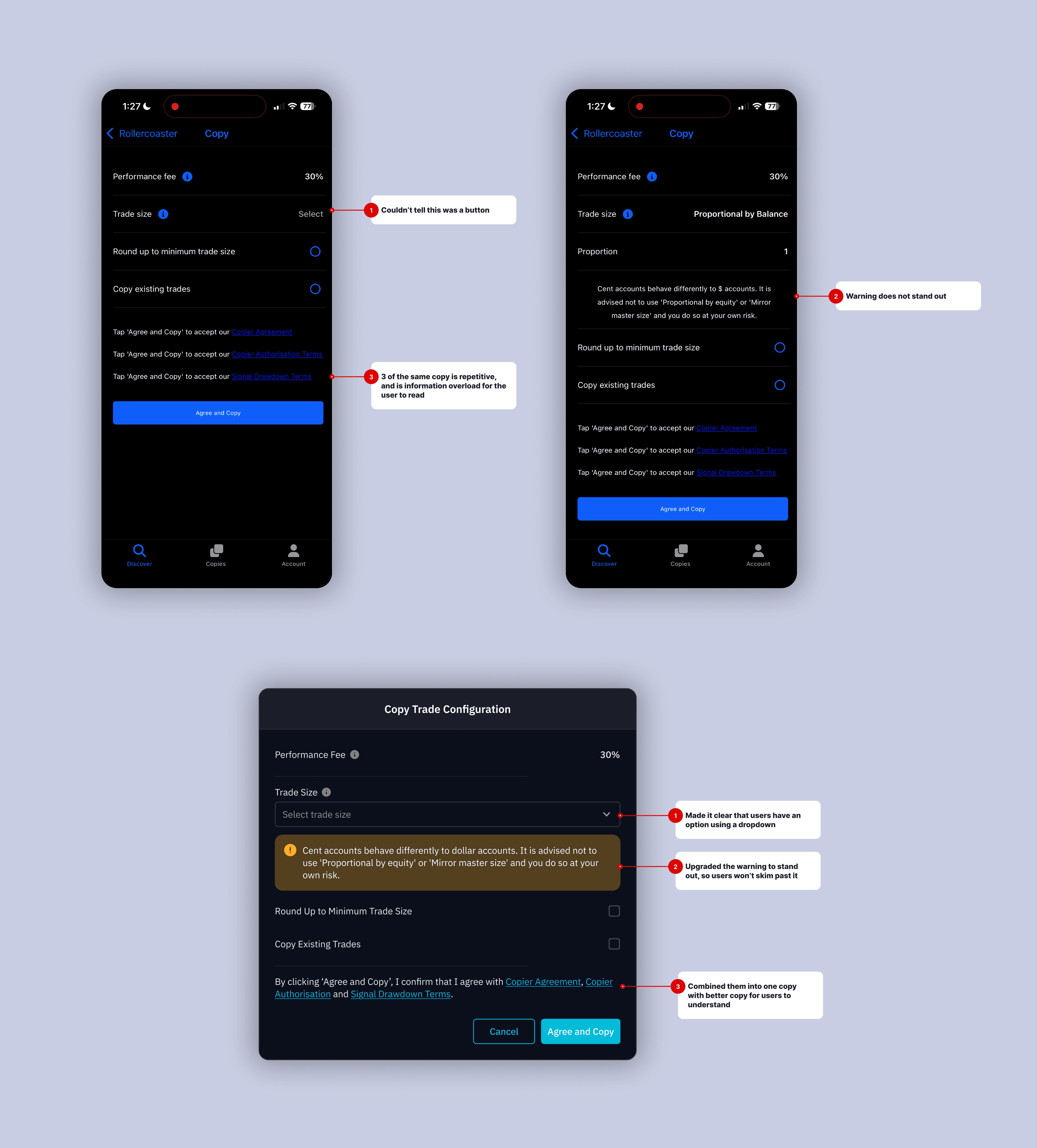 Improved Decision Clarity: Reorganising trading information made key details easier to scan, helping users understand copy strategy performance at a glance.